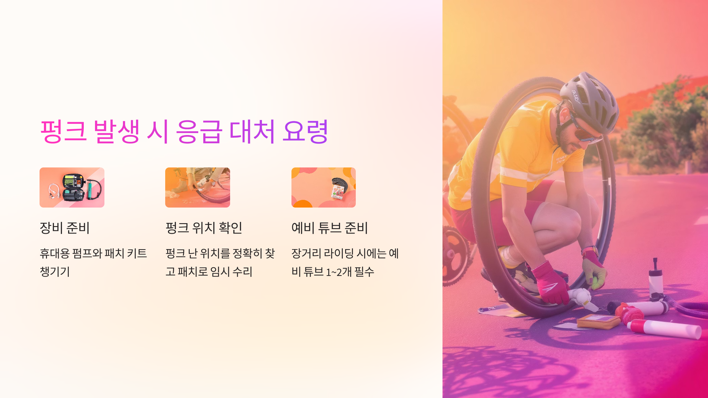 ✅ 장거리 라이딩 시 예비 튜브 1~2개 준비