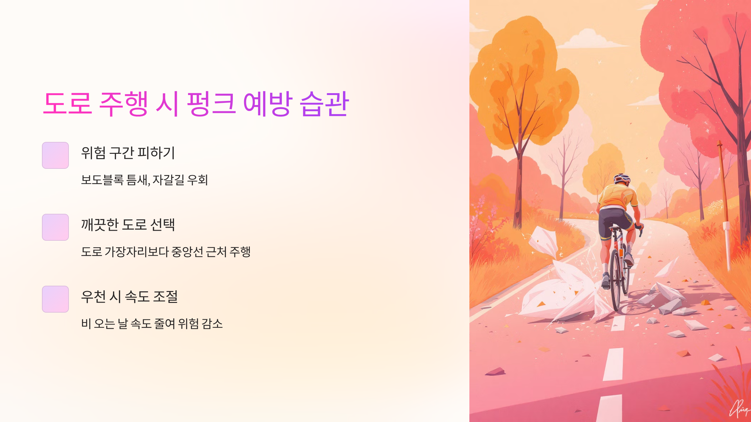 라이딩 중 펑크가 나면 정말 당황스럽죠? 저도 한 번 펑크로 도로 한가운데서 고생했던 적이 있어요. 그래서 오늘은 타이어 펑크를 예방하는 실질적인 방법들을 알려드릴게요!