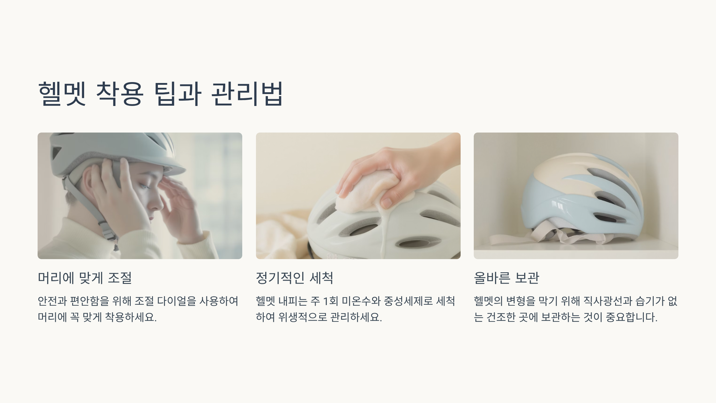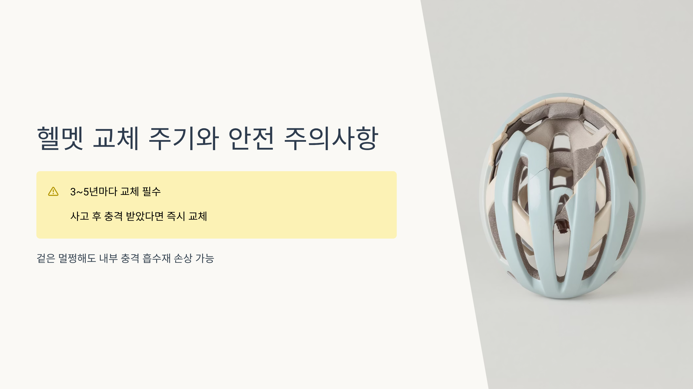 - 헬멧 교체 주기와 안전 관련 주의사항