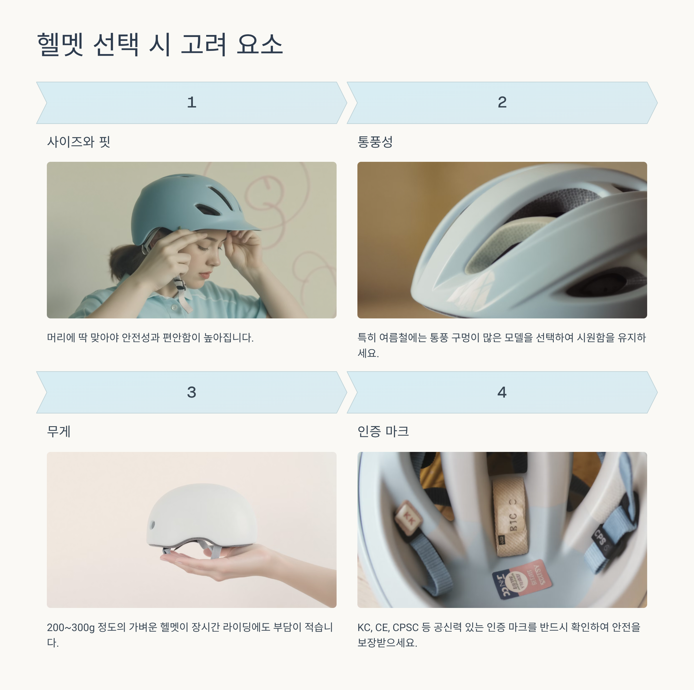 - 헬멧 선택 시 고려해야 할 요소