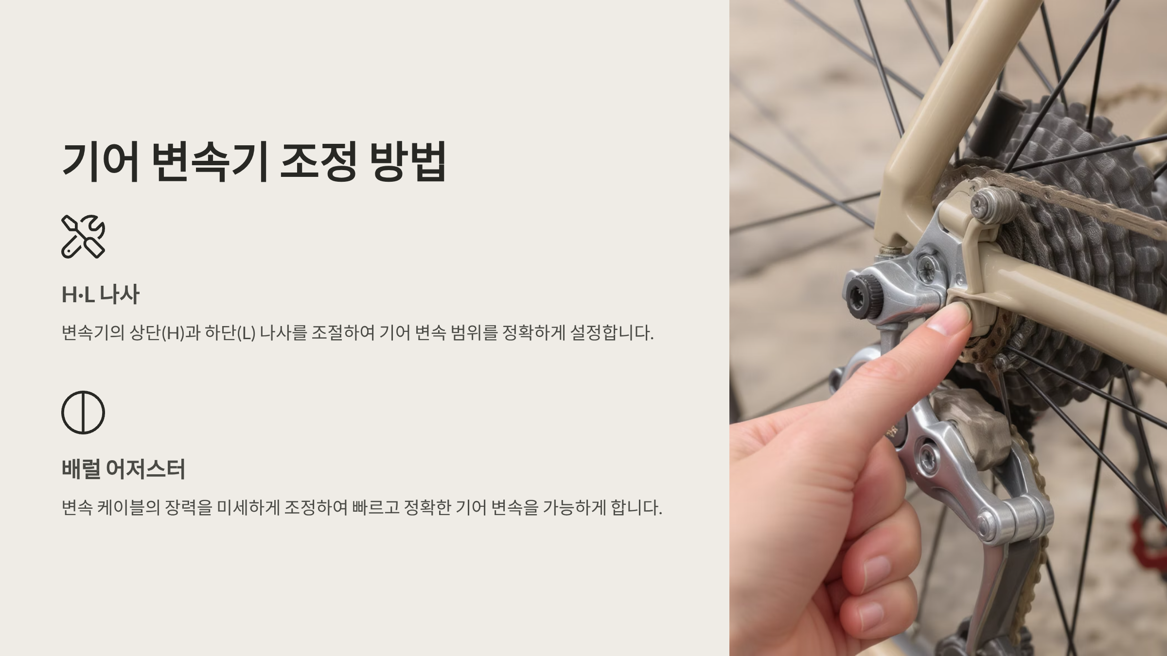 ✅ H·L 나사 – 상단과 하단 변속 범위 조절