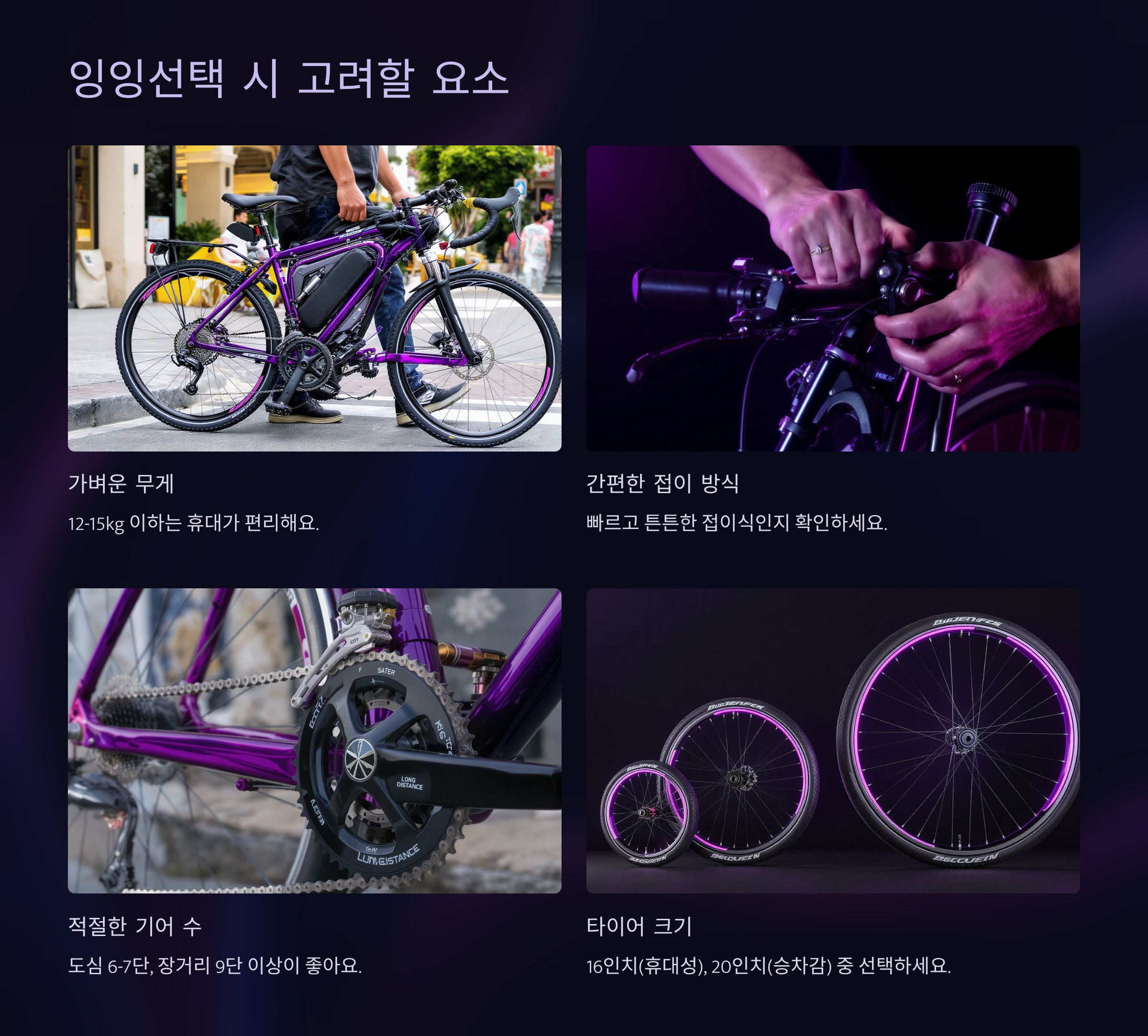 체력 부담을 줄이고 싶다면 전기 접이식 모델이 좋아요.