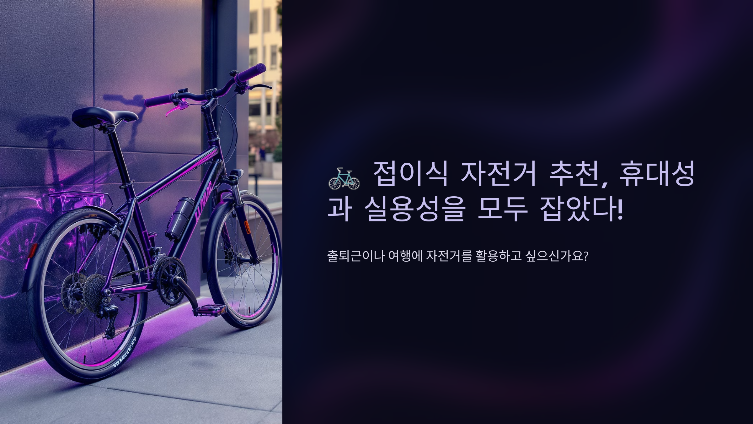 출퇴근이나 여행에 자전거를 활용하고 싶으신가요? 접이식 자전거는 휴대성과 보관이 편리해 도심 라이딩에 특히 좋아요. 제가 직접 타본 모델과 추천 리스트를 소개할게요!