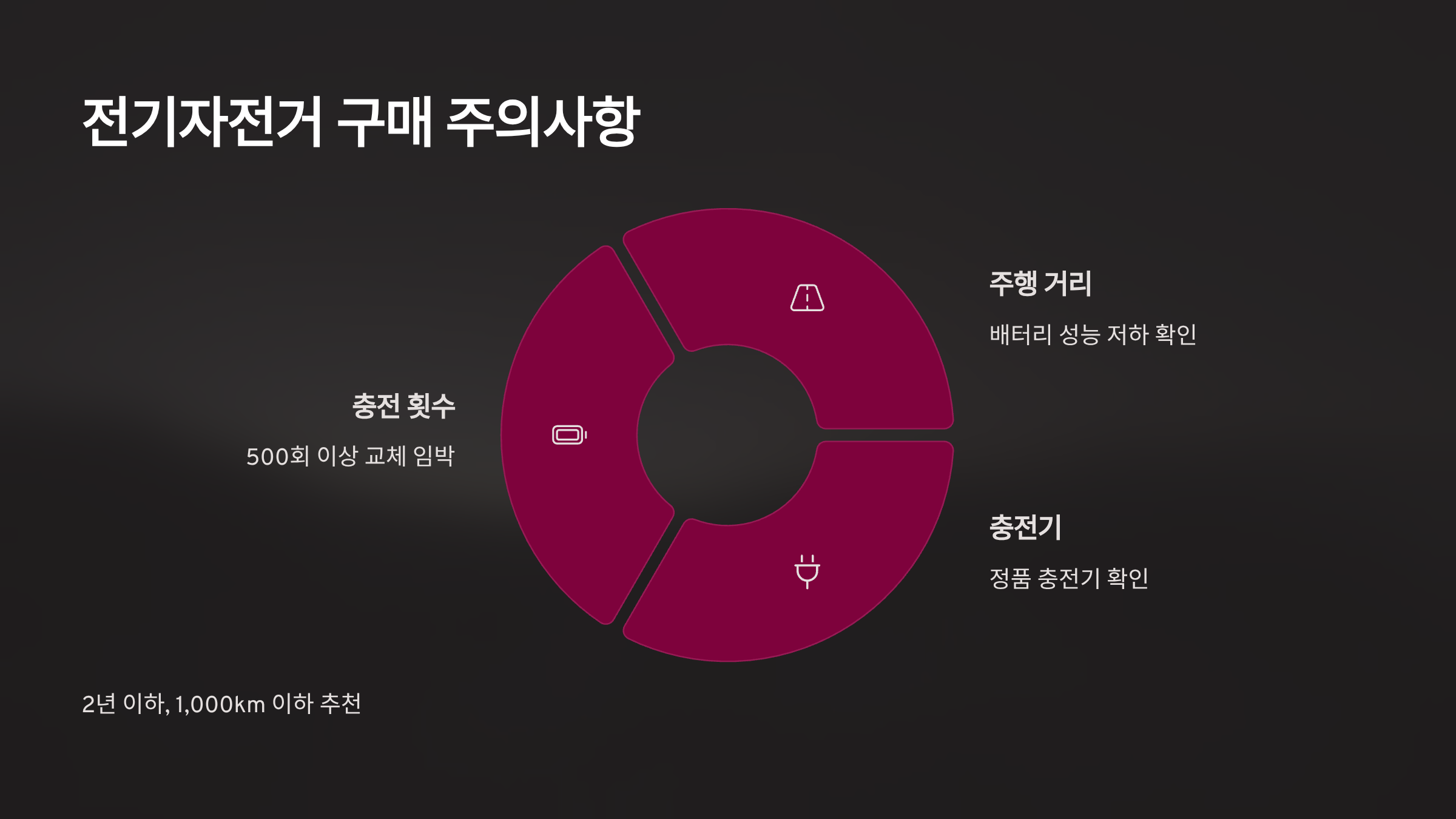 저는 전기자전거는 웬만하면 연식 2년 이하, 주행거리 1,000km 이하만 구매해요.