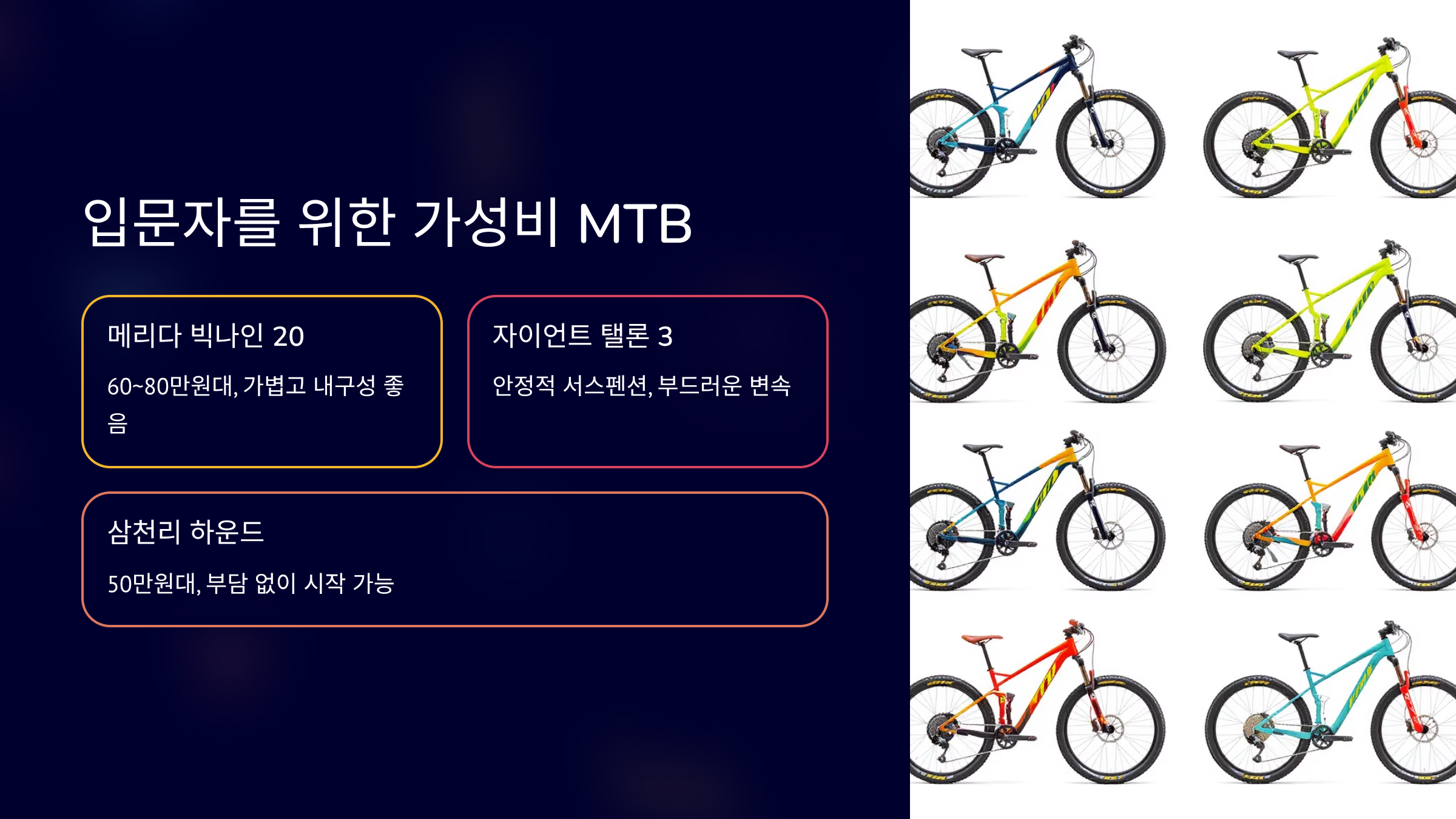 오프로드의 매력을 느끼고 싶으신가요? MTB(산악 자전거)는 험한 길과 산악 코스에서 진가를 발휘합니다. 제가 직접 타본 MTB와 입문자부터 전문가용까지 추천 리스트를 알려드릴게요!